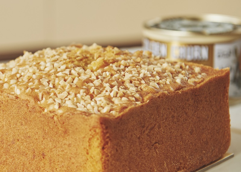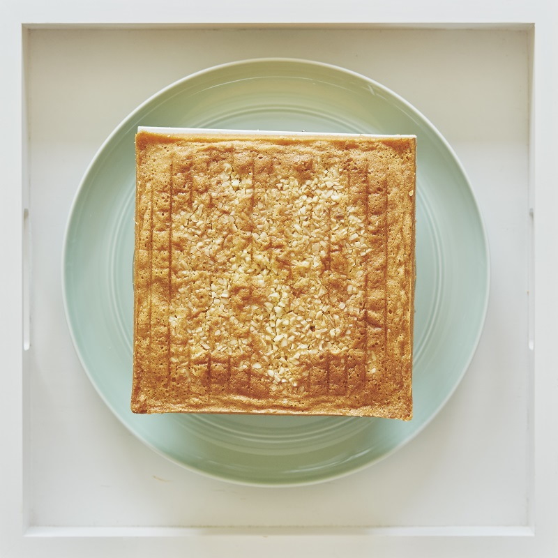 Each 8-inch square of O’Chim’s sugee cake is sop rich with Golden Churn butter, and filled with lightly toasted chopped almonds, fresh eggs, premium brandy, semolina flour and homemade vanilla extract.